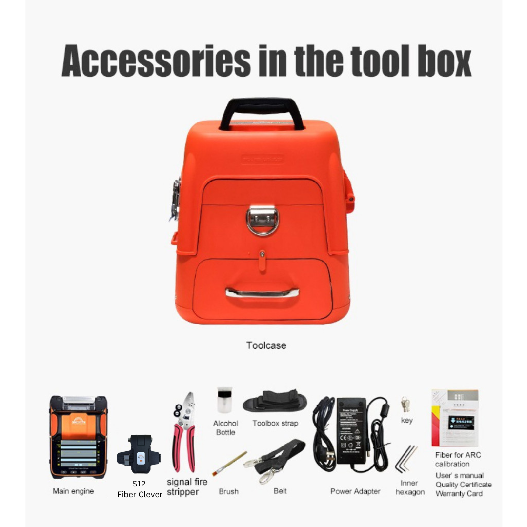 Signal Fire AI-9T use the latest core alignment technology with auto focus and six motors, it is a new generation of fiber fusion splicer. It is fully qualified with trunk construction of medium and short distance, FTTH project, security monitoring and other fiber cable splicing projects. The machine uses industrial quad-core CPU, fast response, is currently one of the fastest fiber splicing machine in the market; with 5-inch 800X480 high-resolution touchscreen, the operation is simple and intuitively; and up to 300 times focus magnifications, making it is very easy to observe the fiber with naked eyes. 5 seconds speed core alignment splicing, 15 seconds heating, the working efficiency increased by 50% compared to ordinary splicing machines. Under the conditions of rigorous testing, the performance is still outstanding; toolbox is small, exquisite, durable, and with unique bench design. The design of operating platform reflects the humanistic care; unique lighting design, it is convenient for night construction or repair. Screen brightness is adjustable and it is convenient for outdoor sunshine environment operation. It also have built-in OPM and VFL The core parts are using imported brands, aviation metal body material with exquisite details. With the combination of advanced technology and design, the new generation of optical fiber fusion splicer will bring you a reliable and comfortable user experience. This optical fiber fusion splicer comes with its Calibration Certificate provided by Signal Fire Technology CO. LTD.