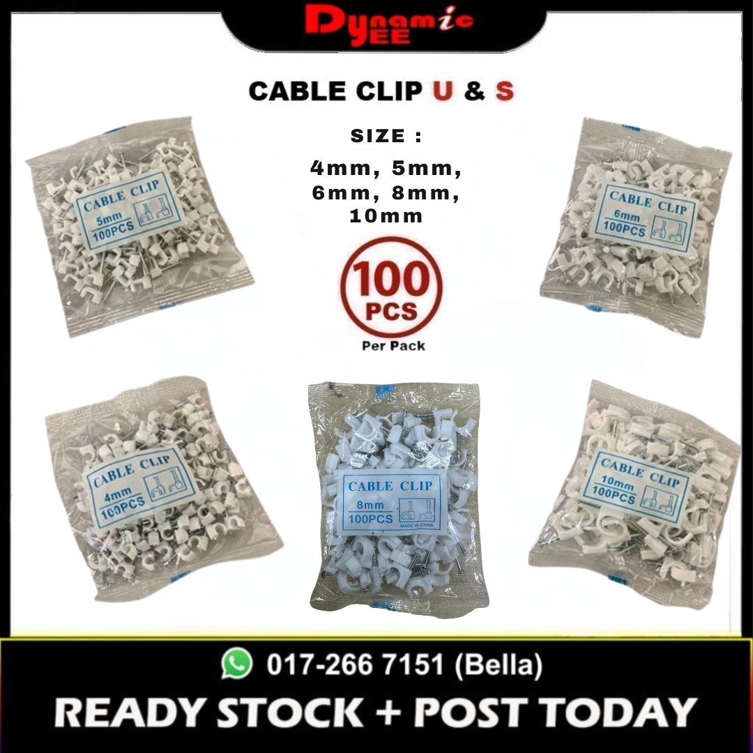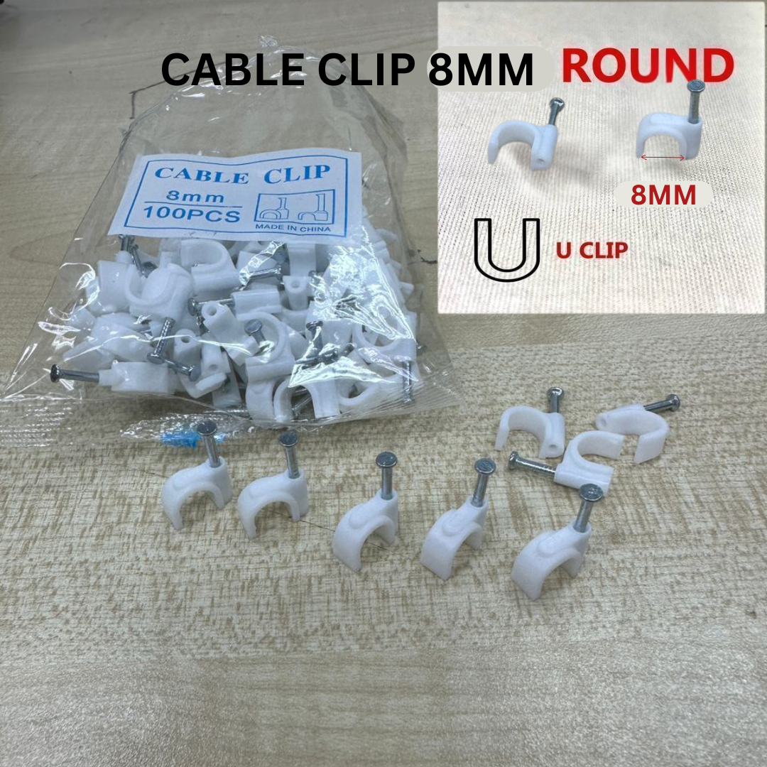 CABLE CLIP 8mm Suitable for: RG6 coax (Astro/MYTV), thicker round power cords (3×1.0–1.5mm²), heavy-jacket CAT7/CAT6 outdoor S/FTP Ethernet, and round speaker cables—best fit 7–8 mm O.D.