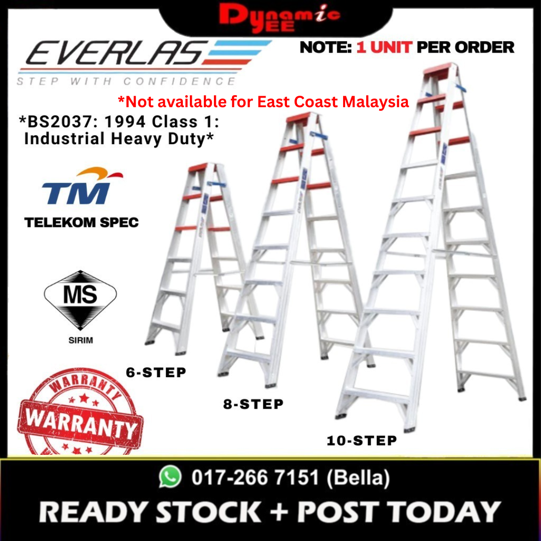 EVERLAS Ladder A-type (DOUBLE SIDED) BS2037: 1994 Class 1 Industrial 6 STEP / 8 STEP / 10 STEP LD101