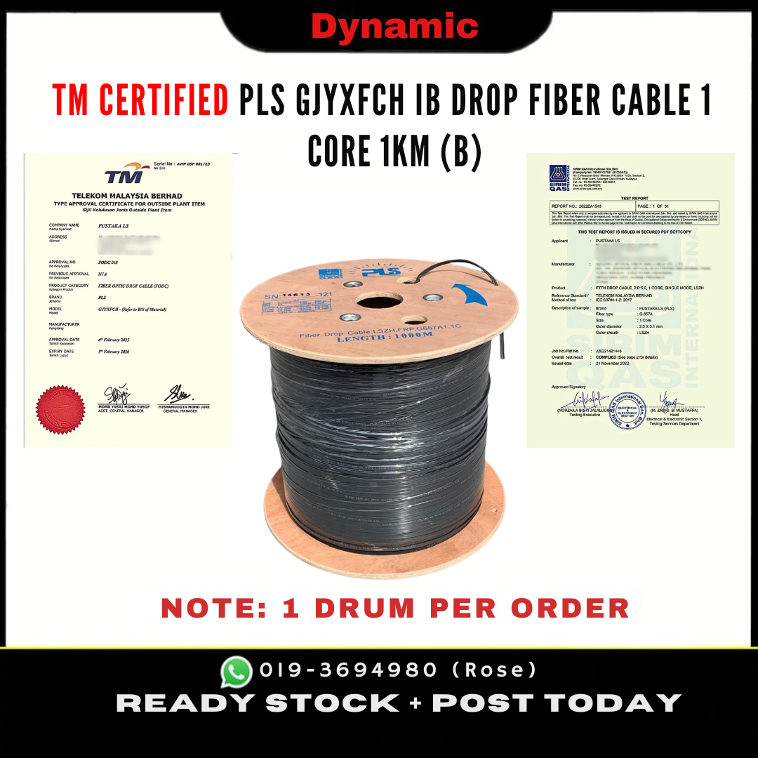 PLS TM CERTIFIED GJYXFCH IB DROP FIBER CABLE 1 CORE 1KM (B) GJYXFCH -1B6A1 G657A1 IB803