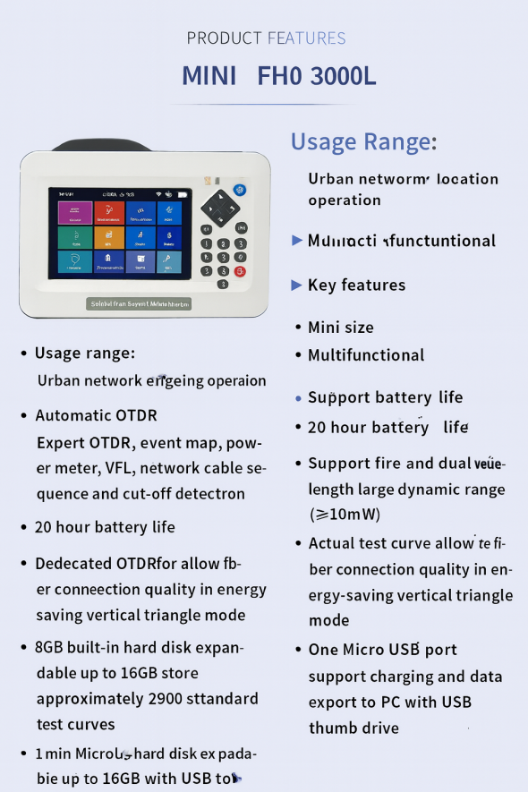 GrandWay OTDR FHO3000L D26L 12 In 1 Function Optical Time Domain Reflectometer OT101