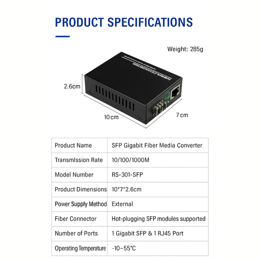 Package included: 2x Single mode Single Fiber transceivers, 2x 2 Pin Power Supply, 1x manual