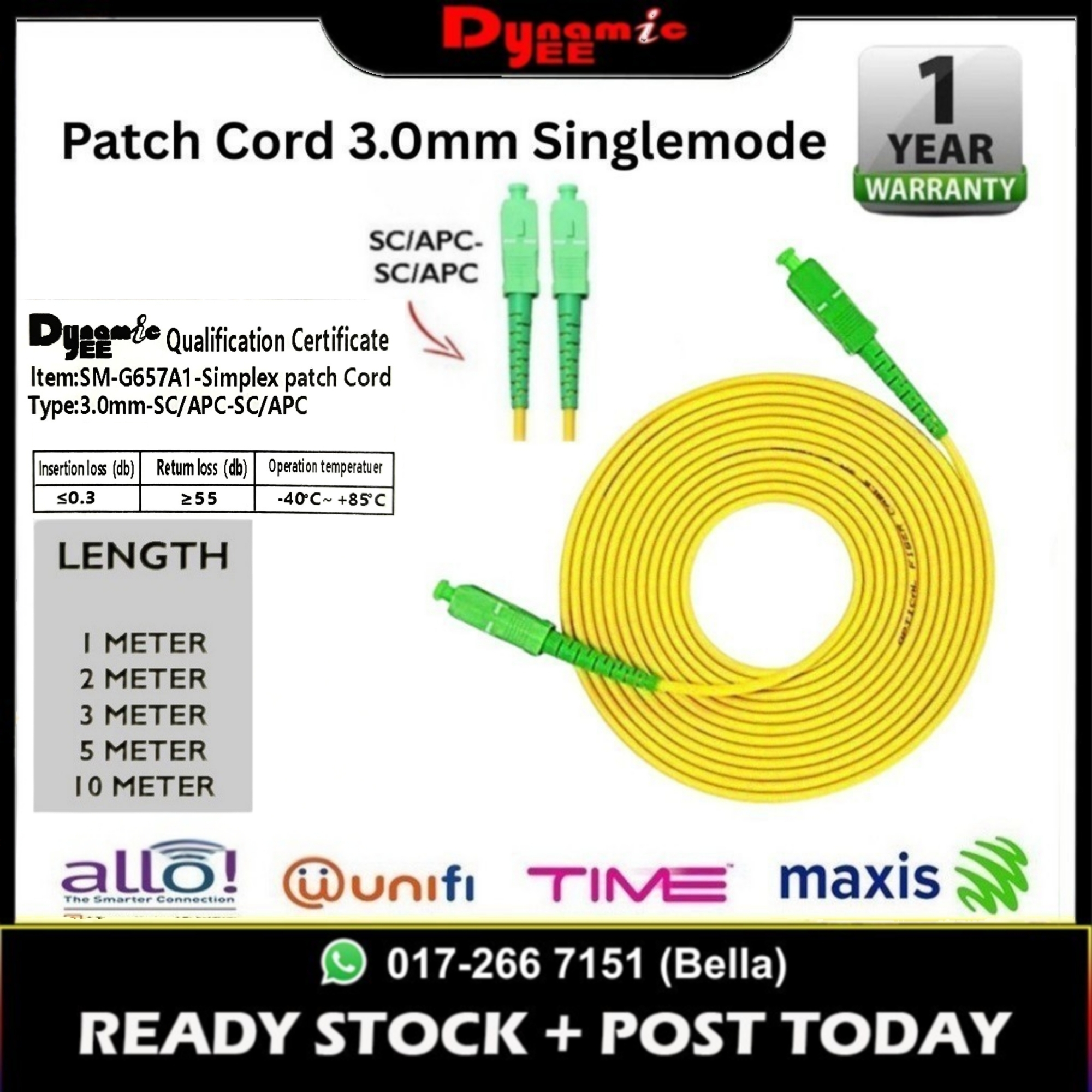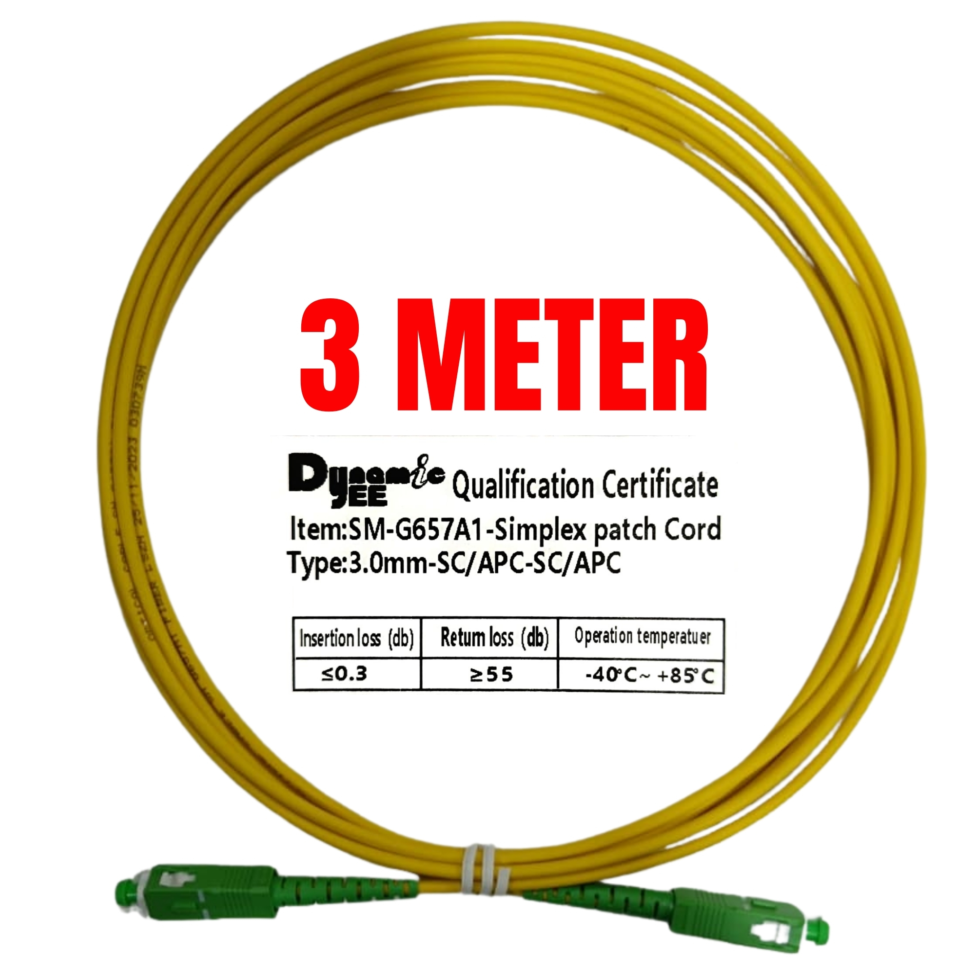 Patch Cord 3.0mm SC/APC-SC/APC Yellow ( 2m, 3m ,5m, 10m) PC301