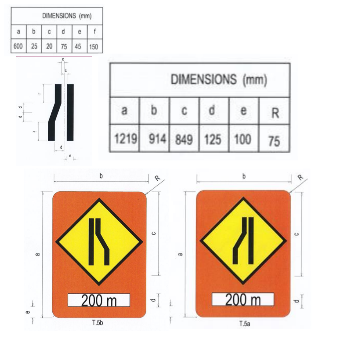 “Road Narrows on Left/Right – 200m” Safety Signboard